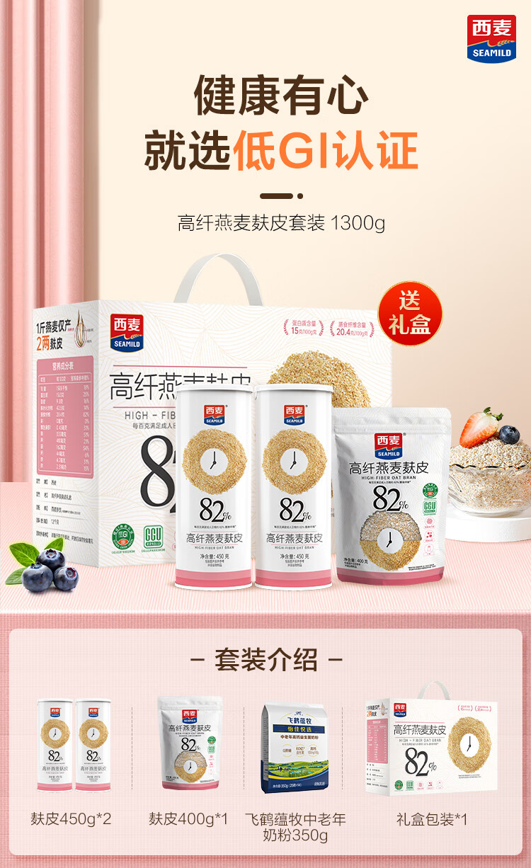 西麦高纤燕麦麸皮礼盒1300g营养早餐冲饮代餐低GI送礼佳品