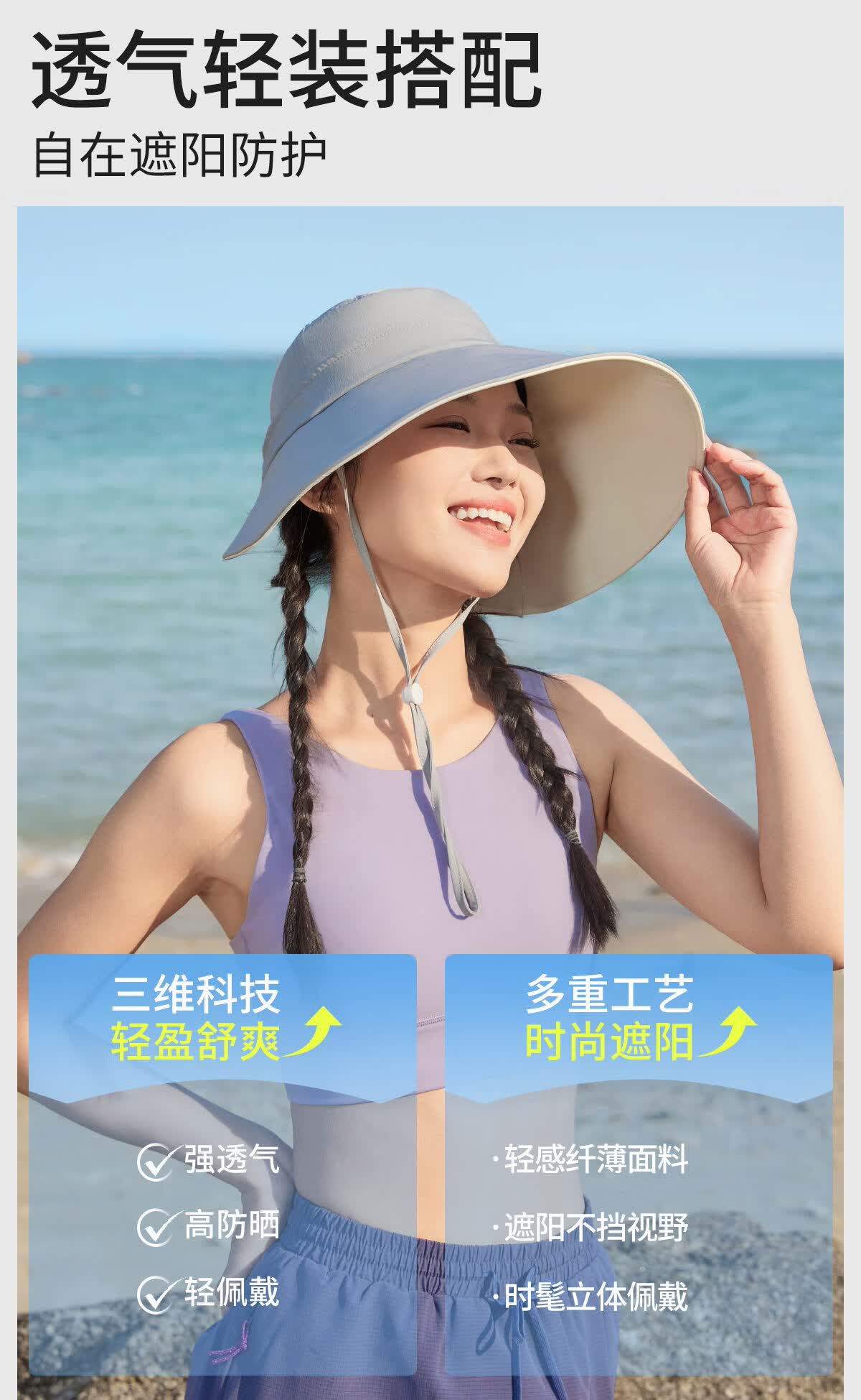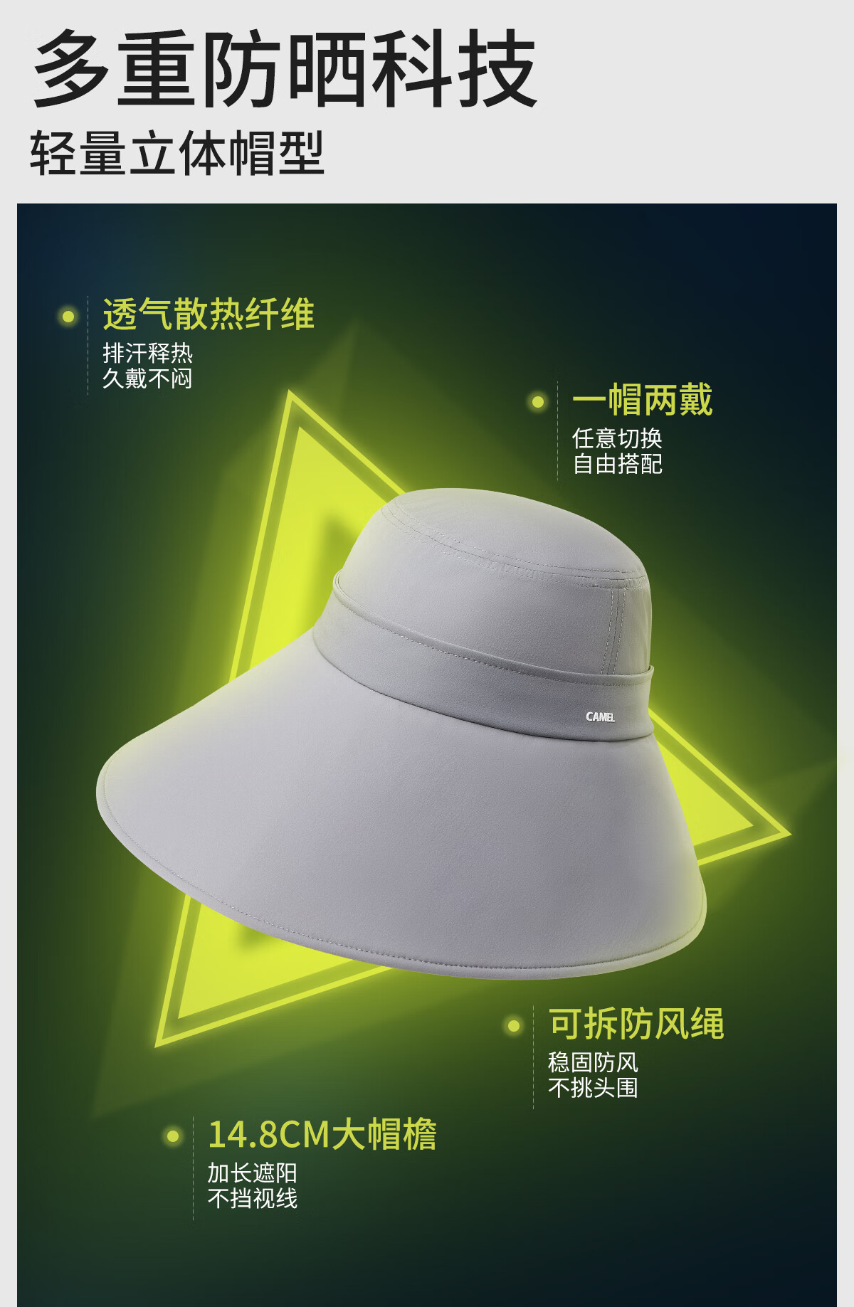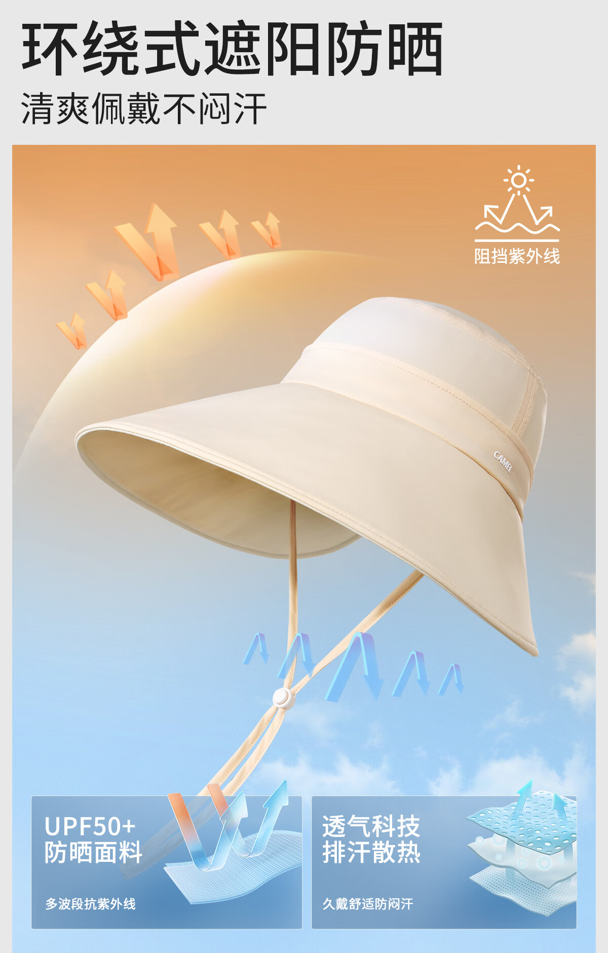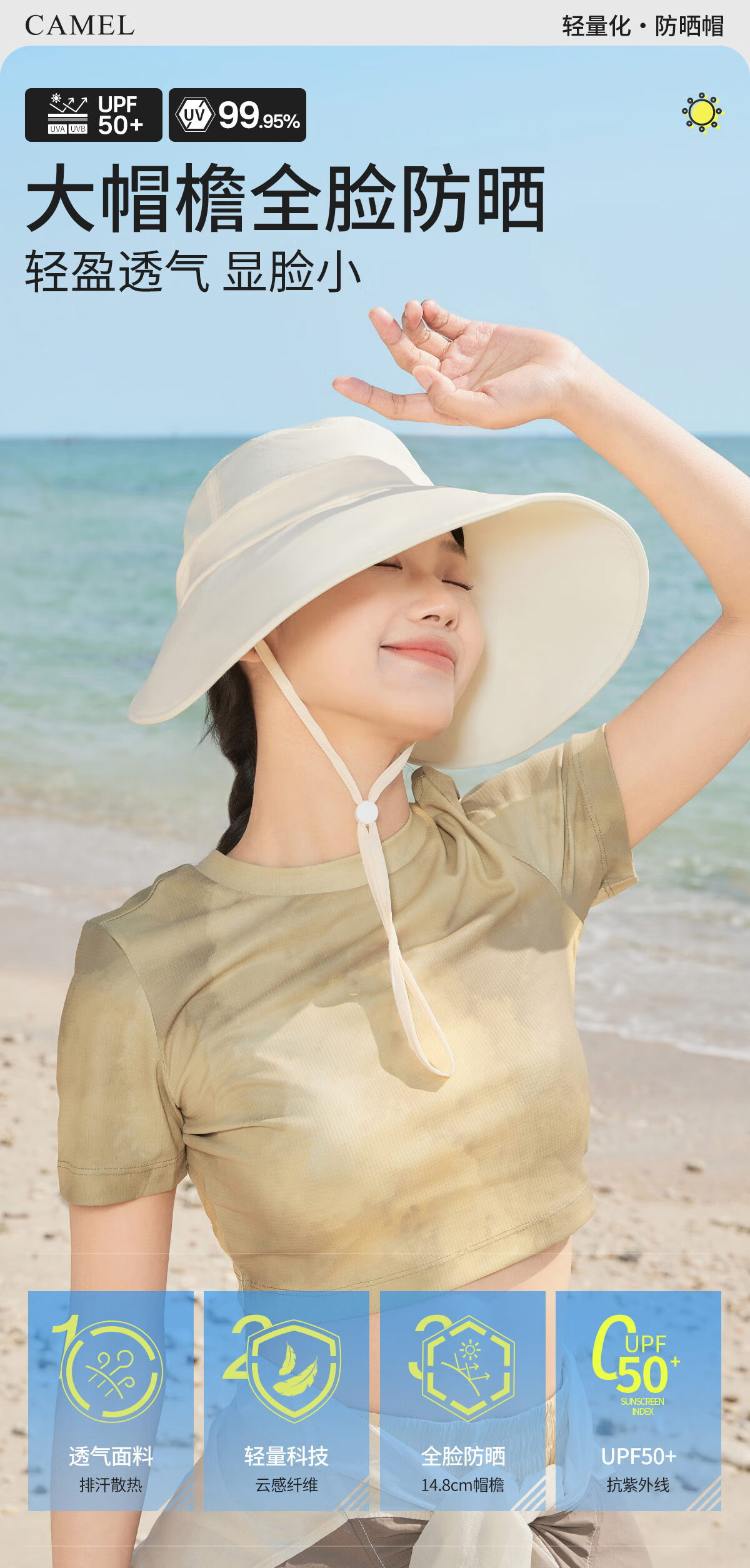 骆驼(CAMEL)大帽檐高倍防晒帽upf50+防紫外线骑车遮阳帽子太阳帽冷帽盆帽5015
